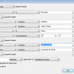 Dopo di ciò si passa alla definizione della regola. Vogliamo che per esempio il nostro artista sia uguale a “Eros Ramazzotti”: allora nella seconda casella selezioniamo “è” e nella terza casella scriviamo “Eros Ramazzotti”. Se invece volessimo escludere tutte le canzoni di Laura Pausini, scriveremmo “Artista” “non è” “Laura Pausini”. Stessa cosa per il genere, l’anno di compilazione eccetera. Per i valori numerici è possibile anche stabilire le regole “è maggiore di”, “è minore di”, “è compresa tra”.